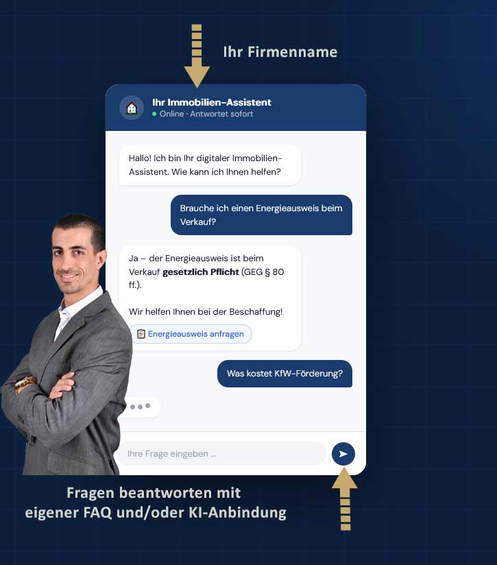 Förderwissen ist ein starker Vertrauensaufbauer. Der Chatbot positioniert Sie als kompetenten Ansprechpartner auch für Themen wie KfW-Förderung und Energieausweis – weit vor dem Beratungsgespräch.
